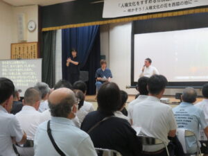 会のはじめに、今年の人権作文から、黒田庄地区内小中学校3校の代表として、上の3名の小中学生のみなさんに人権作文を朗読していただきました。どの作文にも、ひとりひとりの思いが込められ、堂々と朗読してくださいました。子どもたちの作文に毎回感心させられますが、その子どもたちの学びを支えてくださっている学校の先生方の努力にも敬意を表したいと思います。