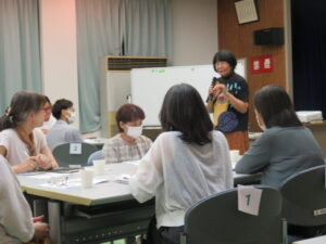 「男女共生」について学びを深めるために、西脇市男女共同参画センターの赤松所長をはじめ3名の職員のみなさんにお越しいただき、西脇市の現状と取り組むべき課題についてお話をいただきました。参加者が配役になりロールプレイで考える「みらいえ劇場」を通して、各々の考えを出し合い話し合う中で、多くの気づきがありました。
