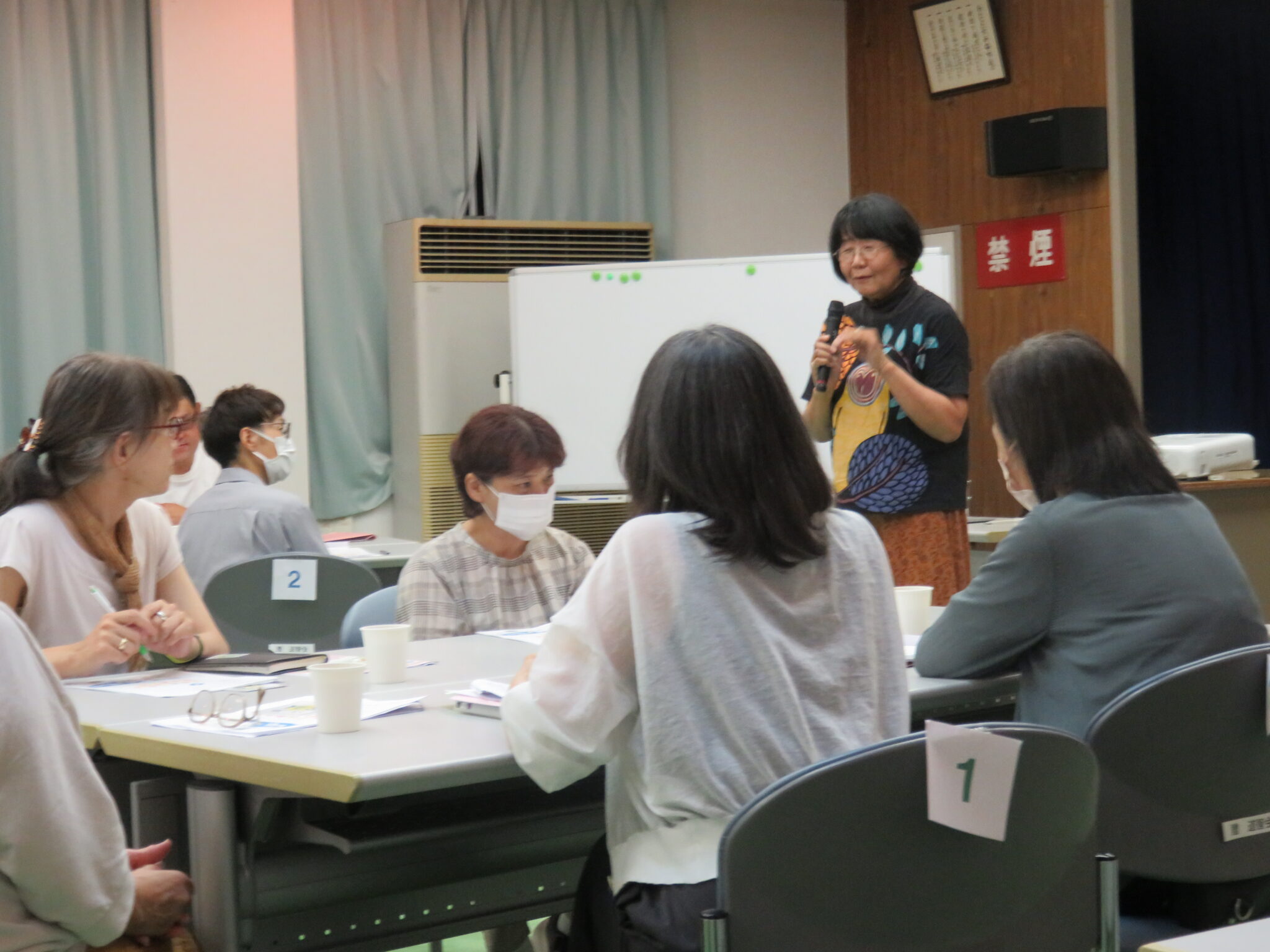 男女共同参画の世界における日本の現状や課題について、きたむら久美子さんにお話をいただき、その後、クロスロードゲームを通して、参加型学習での学習を進めました。クロスロードゲームで設定された条件を考えながら話し合いをする中で、他の人の様々な意見を聞くことができ、とても楽しく笑い声が絶えない中にも、活発な意見交換ができ新しい気付きの場になりました。